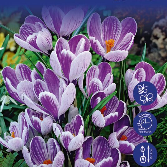 Transform any outdoor space with Crocus Bulbs King Of Striped. Early-blooming and distinctive, these flowers feature striped petals with shades of puples adding visual allure to your spring landscape. An early spring flowering variety, perfect in any garden or container. Attracts butterflies & bees so a great pollinator.