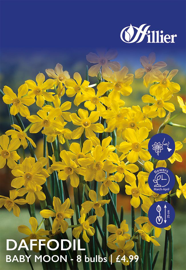 Elevate your garden with the multi-headed, star shaped golden yellow Daffodil Baby Moon elegance. Perfect for any outdoor space, garden or container.