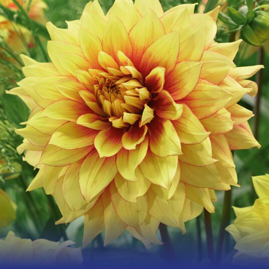 Dahlia Dazzling Sun Tubers produce exceptionally large flowers, reaching sizes comparable to dinner plates, measuring up to 25cm in width. These impressive blooms add a touch of grandeur to any garden setting.
