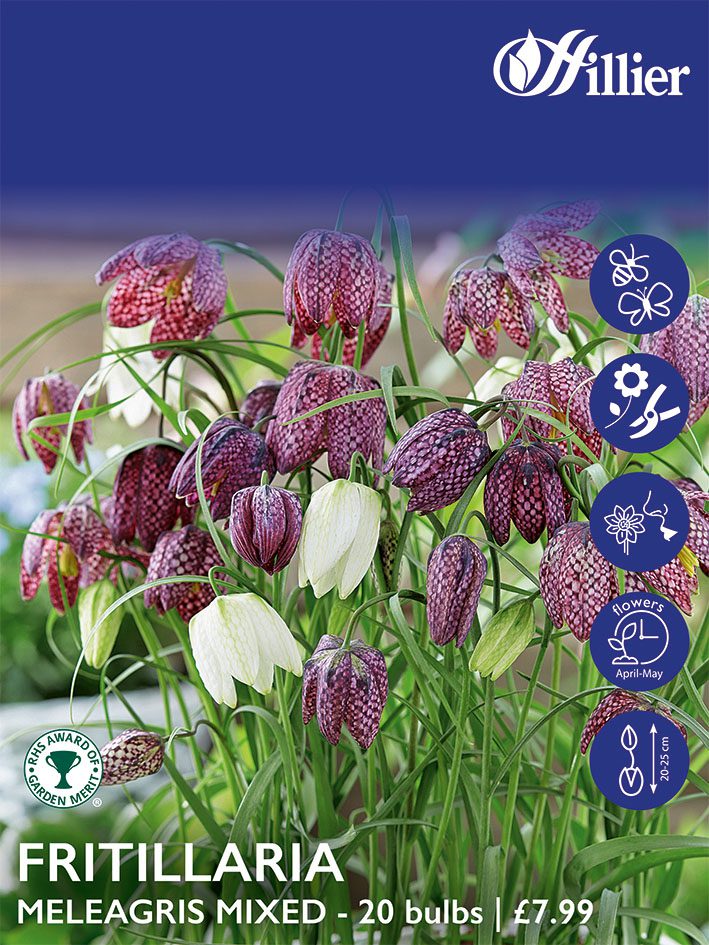 Elevate your garden with this mixed pack of Fritillaria Meleagris bulbs. Unique checkerboard petals in a variety of enchanting colours. Early spring elegance for borders, woodland areas and containers. These will flower and bring any outdoor space or garden to life.