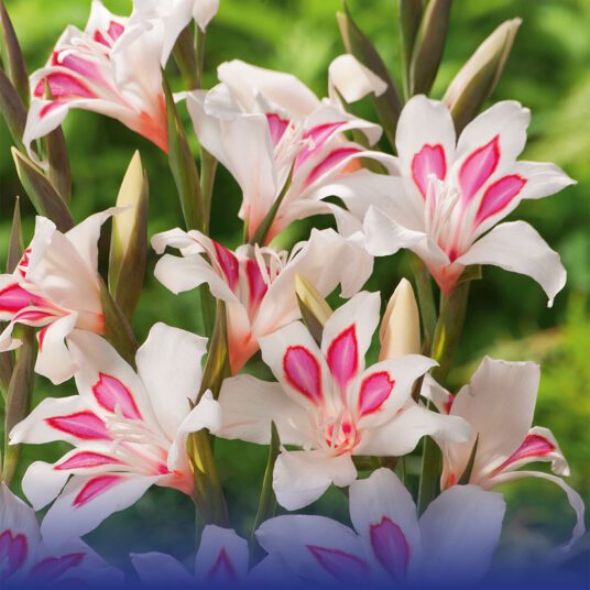 Discover Gladioli Prince Claus Bulbs, a nanus Gladioli variety that exudes timeless beauty. Adorned with pure white flowers featuring cerise markings on the lower petals, this variety is perfect for creating exquisite cut-flower arrangements. Elevate the charm of your floral displays with the pristine allure of Gladioli Prince Claus Bulbs.