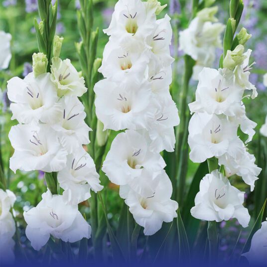 Glamini Blondie Bulbs offer a delightful twist on the traditional gladiolus, with their compact and low-growing stature, making them ideal for smaller spaces or container gardens. These petite beauties bloom in a stunning pure white colour, adding a touch of elegance to any garden. Unlike taller varieties, there's no need for staking, making them easy to grow and maintain.