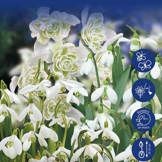 Transform your garden with the Hillier Snowdrop Collection. This pack of 20 bulbs offers a beautiful display of delicate blooms, perfect for brightening up your outdoor space from January to March. Reaching up to 20cm in height, these snowdrops create a stunning natural carpet, bringing a touch of early spring charm to any garden. Easy to grow and ideal for borders, woodland areas, or under trees, this collection is a must-have for any gardener.
