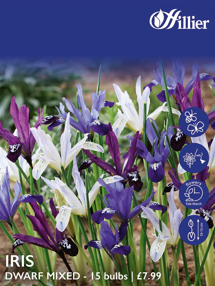 Enchant your garden with mix of Iris Dwarf Bulbs. A diverse blend of charming shades of purples, blues and whites, these are compact and vibrant, perfect for borders, rock gardens and containers and will elevate any garden or outdoor space.