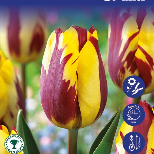 Elevate your garden or outdoor space with Tulip Bulbs 'Helmar'. These blooms feature rich golden petals with fiery red streaks, creating a stunning visual contrast. A springtime favourite, these tulips infuse any landscape with warmth and vibrancy. Planting and caring for them is easy, promising a breathtaking burst of colour that returns year after year.