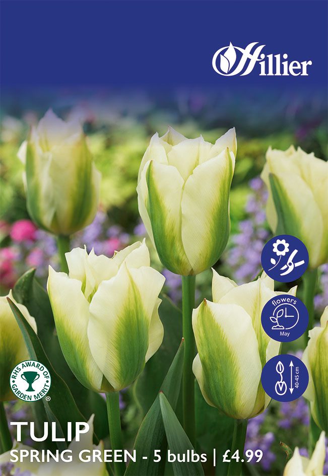 Enhance your garden with these a mass of Tulip 'Spring Green' which will create an understated display. These vibrant white flowers streaked with green can make a great contrast with other blooms or stand alone in any garden or landscape. These low maintenance hardy Tulips would be perfect in pots or in beds and will thrive in sunlight.