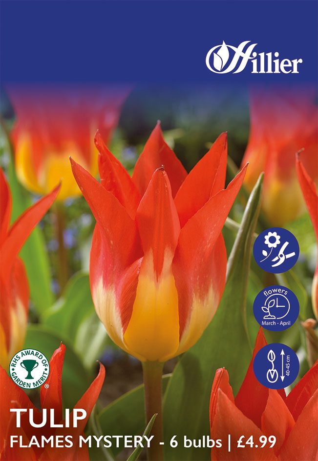Tulip Flames Mystery Bulbs offer a dramatic addition to your Spring borders. With their striking presence, they create a bold and captivating display that stands out in any garden setting. Ideal for adding impact and visual interest to your outdoor space.