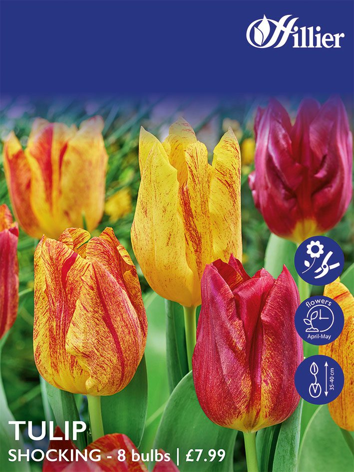 Tulip Shocking Bulbs deliver a spectacular display with their classic tulip form and robust stems. Ideal for adding dramatic flair to your garden, they’re also perfect for cutting, ensuring a stunning presentation in any arrangement.
