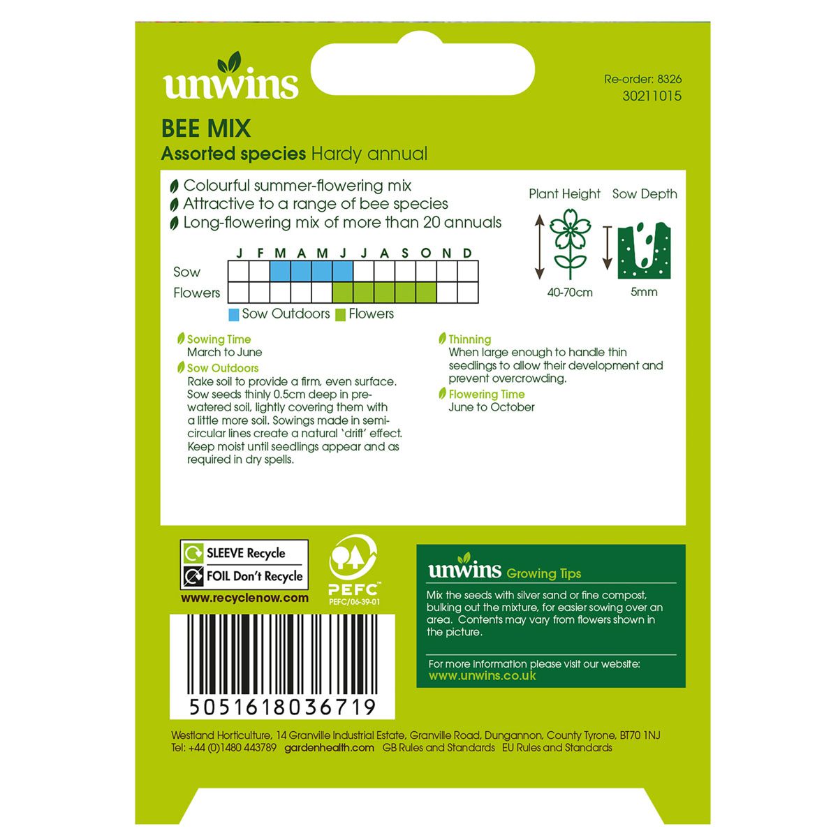 Nature’s Haven Mixed Bee Seeds offer a vibrant blend of over 20 summer-flowering hardy annuals, specially selected to attract a wide range of bee species. Easy to grow and long-flowering, this colourful mix provides a valuable source of nectar and pollen from early summer through to autumn. Suitable for sowing indoors or directly outdoors from March to June, these flowers will bloom from June to October, making them an excellent choice for gardeners looking to support pollinators while adding colour and life to their garden.