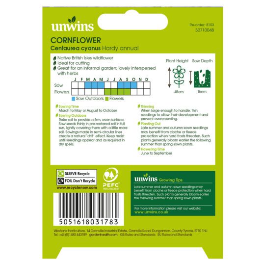 When to sow Unwins Centaurea Cornflower Wildflower Seeds