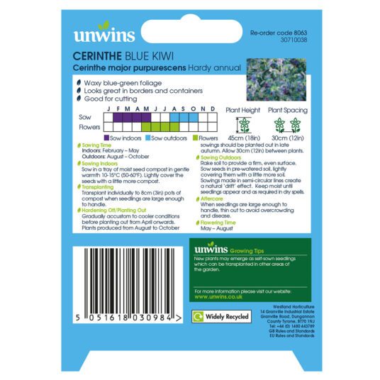 When to sow Unwins Cerinthe Blue Kiwi Seeds