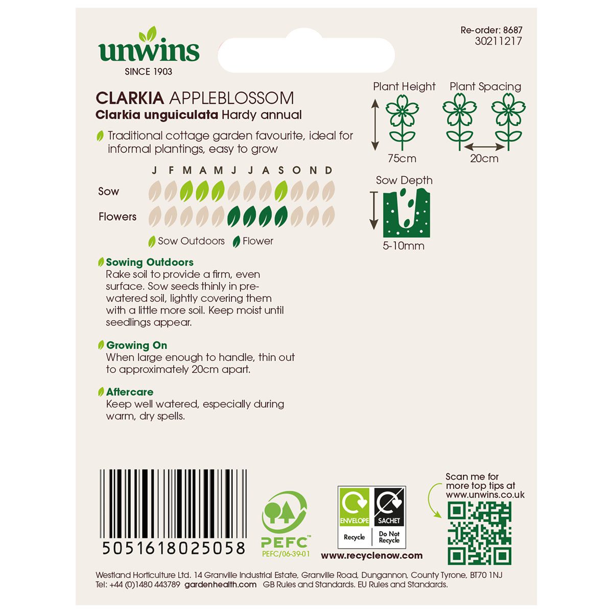 When to sow Unwins Clarkia Appleblossom Seeds