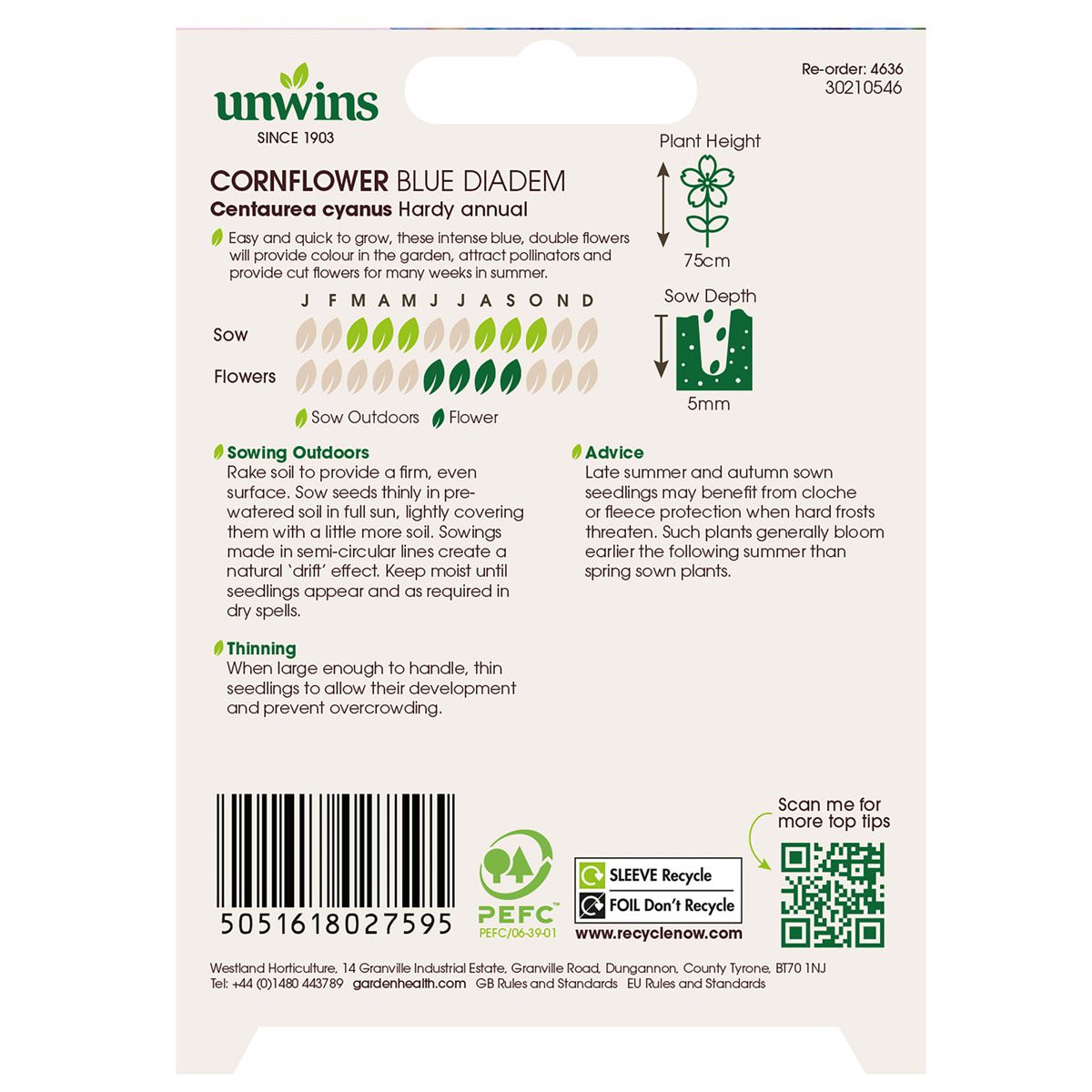When to sow Unwins Cornflower Blue Diadem Seeds