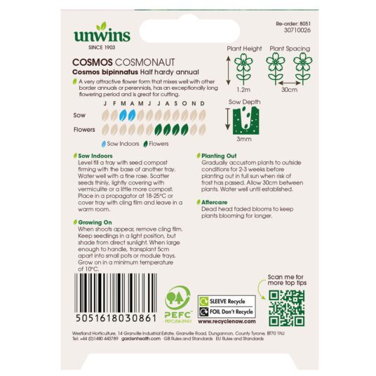 When to sow Unwins Cosmos Cosmonaut Seeds