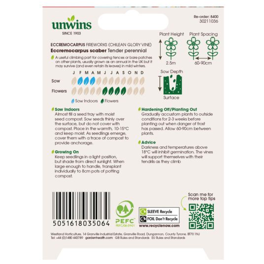 When to sow Unwins Eccremocarpus Fireworks Seeds