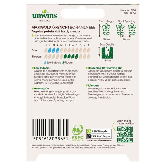 When to sow Unwins French Marigold Bonanza Bee Seeds