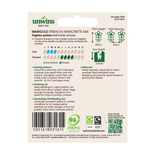 When to sow Unwins French Marigold Marionette Mix Seeds