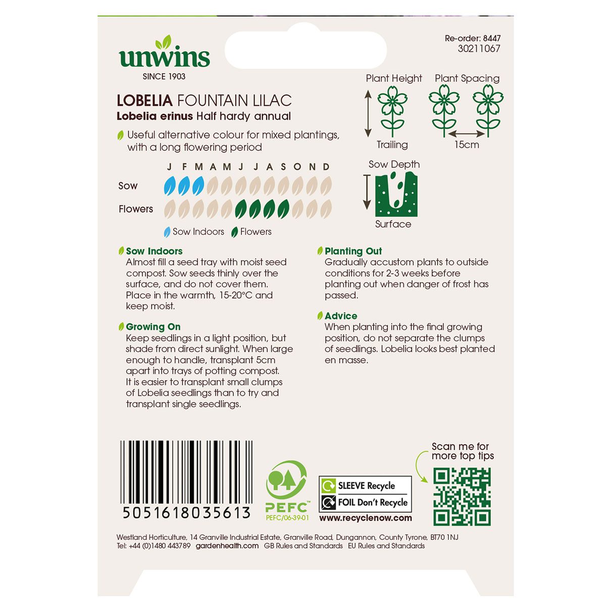 When to sow Unwins Lobelia Fountain Rose Seeds