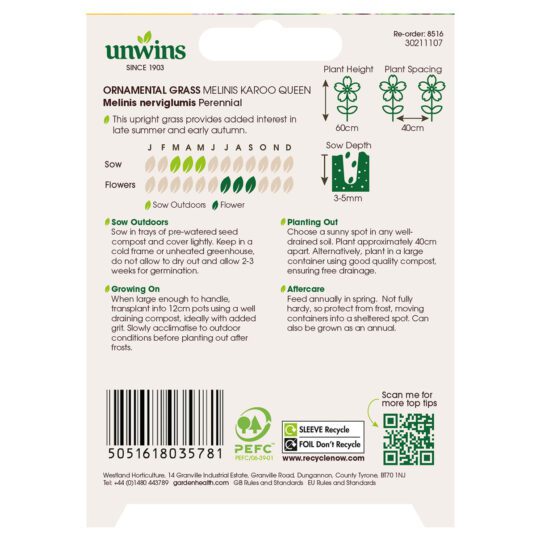 Unwins Melinis Karoo Queen Seeds produce gorgeous, fluffy pink-red plumes that add soft texture and colour to borders and containers. This tender perennial makes a striking accent plant through summer and into early autumn. Sow indoors for an earlier start, or sow outdoors from March to May once conditions are warm. Flowering from June through to September, Melinis Karoo Queen brings movement and a light, airy feel to any planting scheme.