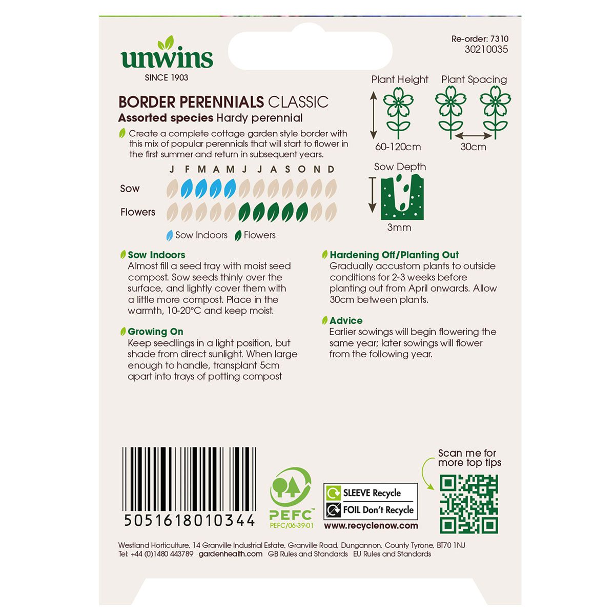When to sow Unwins Mixed Border Perennials Cottage Garden Seeds