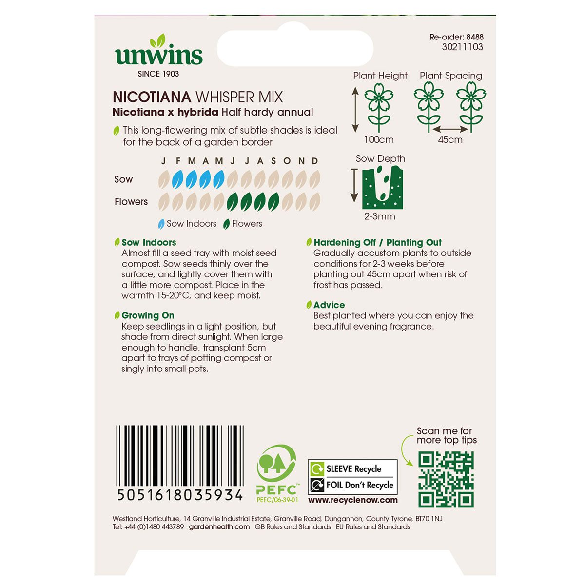 When to sow Unwins Nicotiana Whisper Mix Seeds