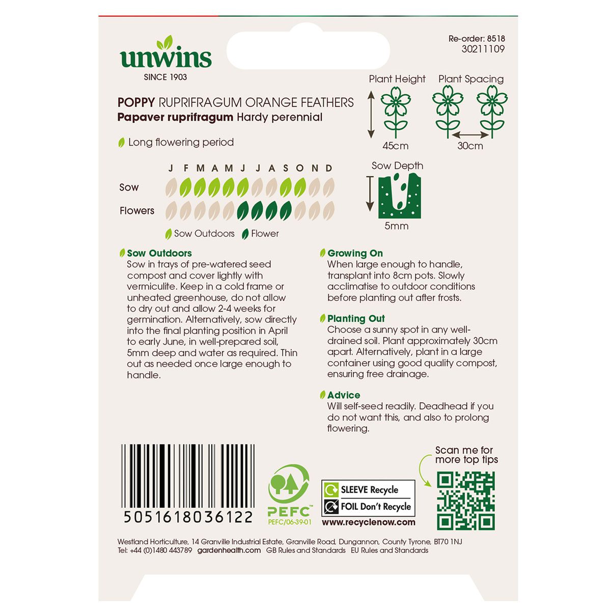 When to sow Unwins Papaver ruprifragum Orange Feathers Seeds