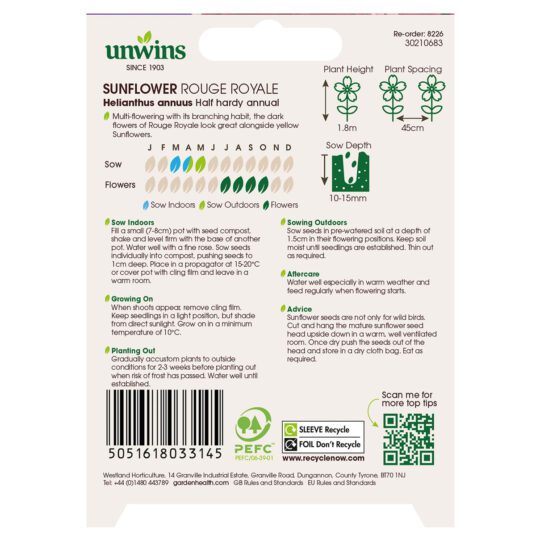 When to sow Unwins Sunflower Rouge Royale Seeds