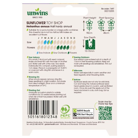 When to sow Unwins Sunflower Toyshop Seeds