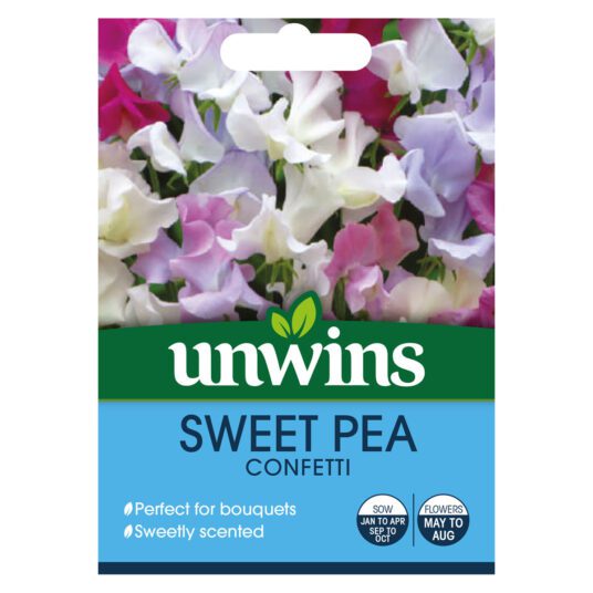 Unwins Sweet Pea Confetti seeds produce a delightful mix of warm pastel shades, blended with rich purples and pinks for a truly eye-catching display. This beautifully scented variety is perfect for adding colour and fragrance to borders, containers, and climbing supports. A hardy annual that’s easy to grow, Sweet Pea ‘Confetti’ can be sown indoors from January to March or again in early autumn, with outdoor sowing from March to April, rewarding you with masses of flowers from May through to August.