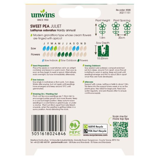 When to sow Unwins Sweet Pea Juliet Seeds