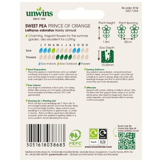 When to sow Unwins Sweet Pea Prince Of Orange Seeds