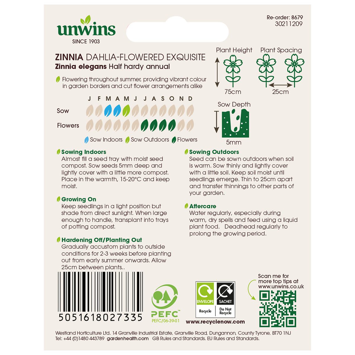 When to sow Unwins Zinnia Dahlia Flowered Exquisite Seeds
