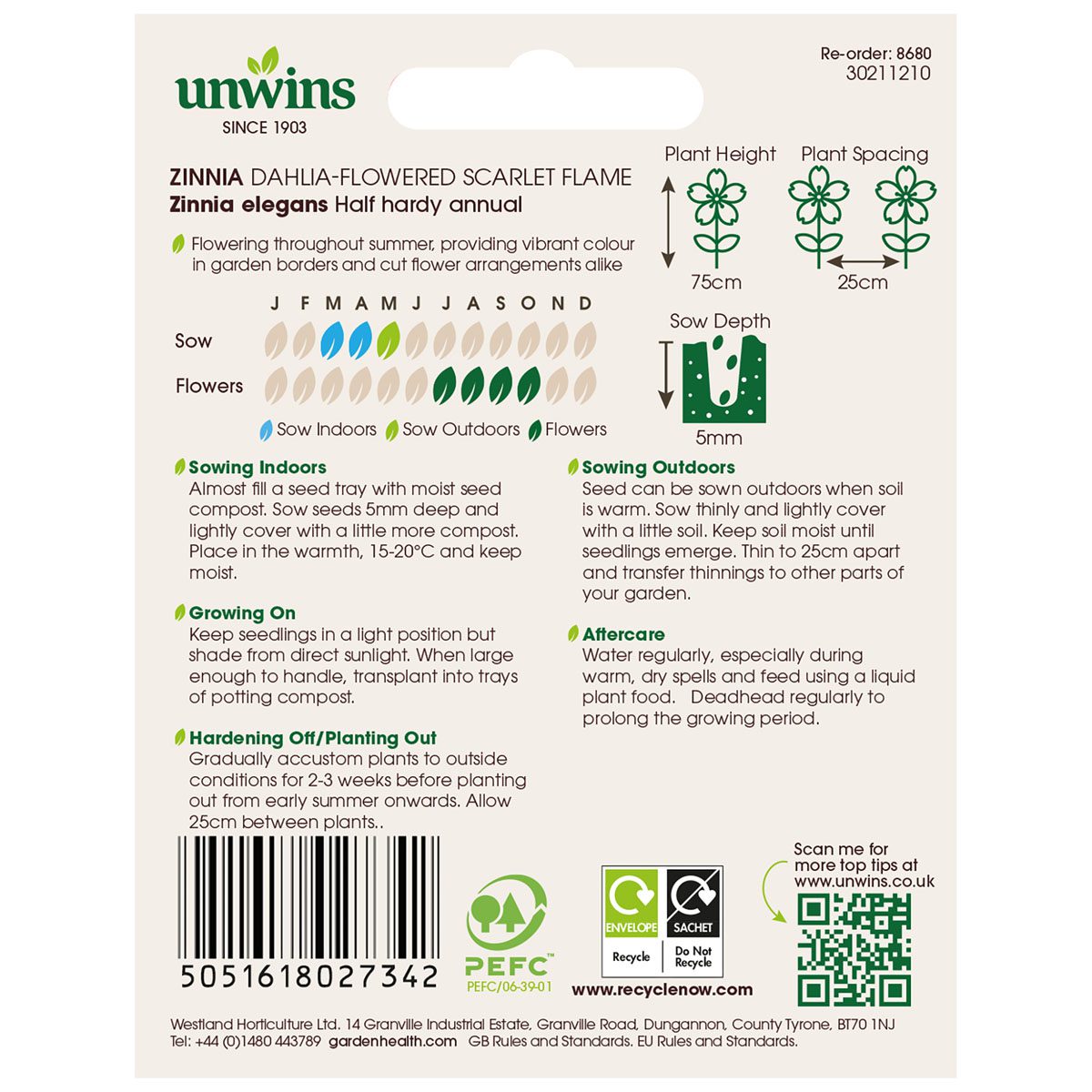 When to sow Unwins Zinnia Dahlia Flowered Scarlet Flame Seeds