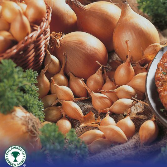 Setton Onion Sets are an RHS Award winning variety known for their excellent flavour, strong skin, and reliable performance. Producing very consistent, round onions with an attractive golden yellow colour, Setton offers a more uniform shape than Sturon and delivers an impressive yield. Easy to grow and dependable, these onion sets can be planted from February through May and harvested from May to August, making them a great choice for gardeners looking for high-quality onions with outstanding results.