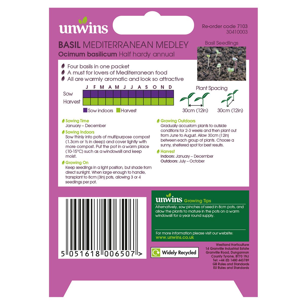 When to sow and harvest Unwins Basil Mediterranean Medley Seeds