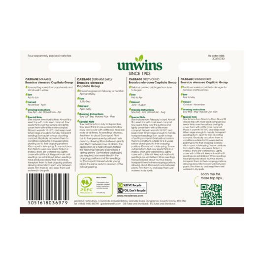 When to sow and harvest Unwins Cabbage All Season Collection Seeds