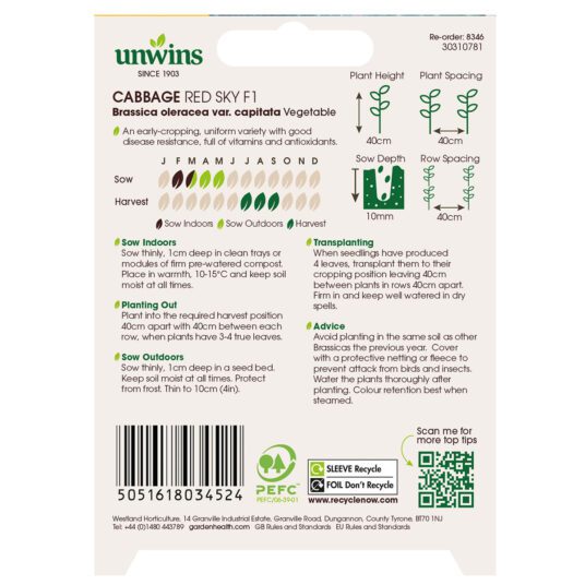 When to sow and harvest Unwins Cabbage Red Sky Seeds