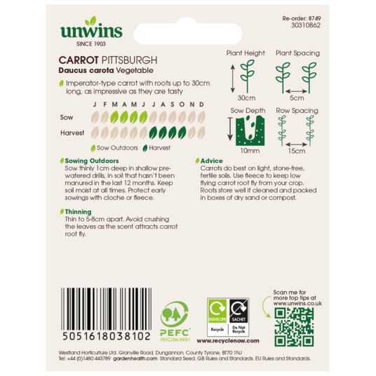 When to sow and harvest Unwins Carrot Pittsburgh Seeds