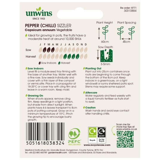 When to sow and harvest Unwins Chilli Pepper Sizzler Seeds