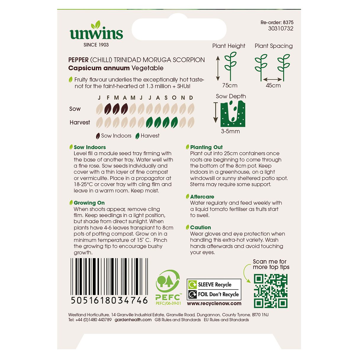 When to sow and harvest Unwins Chilli Pepper Trinidad Moruga Scorpion Seeds