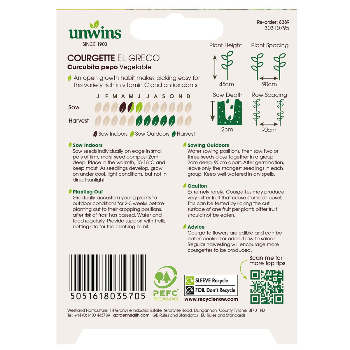When to sow and harvest Unwins Courgette El Greco Seeds