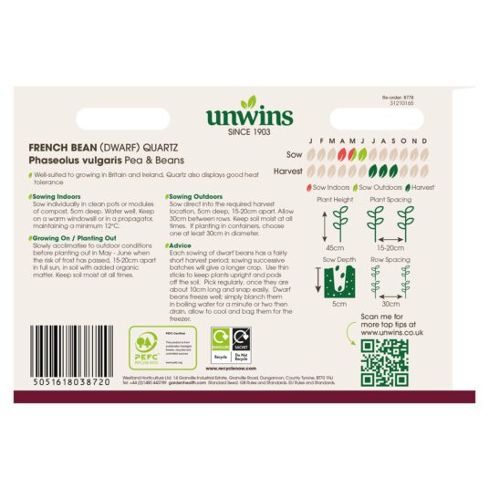 When to sow and harvest Unwins Dwarf French Bean Quartz Seeds