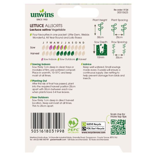 When to sow and harvest Unwins Lettuce All Sorts Mix Seeds