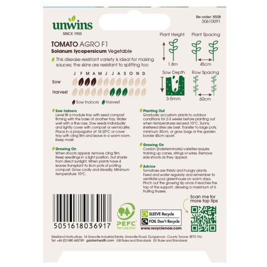 When to sow and harvest Unwins Organic Cordon Tomato Agro Seeds