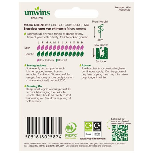When to sow and harvest Unwins Pak Choi Colour Crunch Mix Seeds