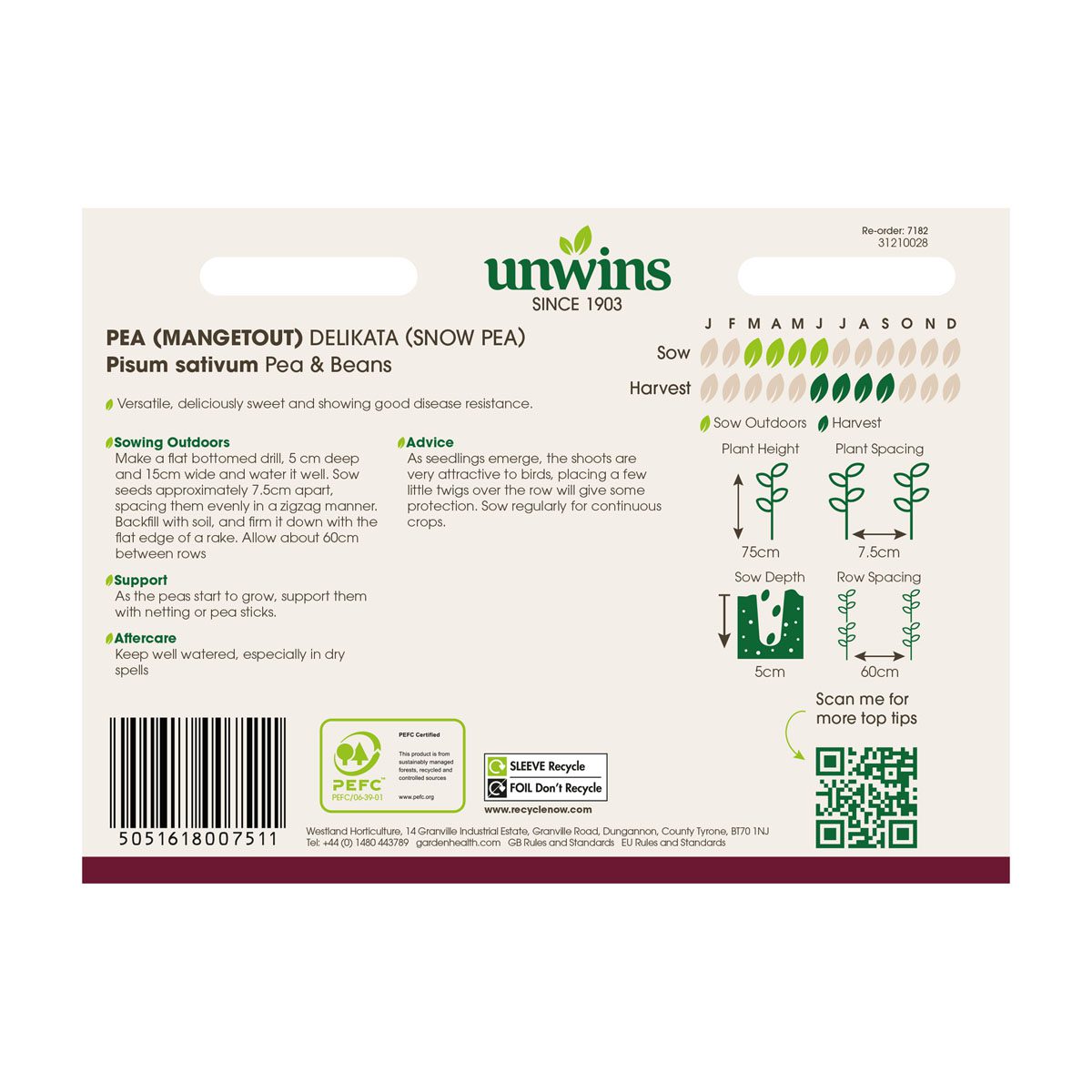 When to sow and harvest Unwins Pea Mangetout Delikata Seeds