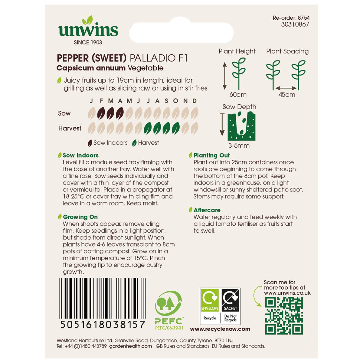 When to sow and harvest Unwins Pepper Sweet Palladio Seeds