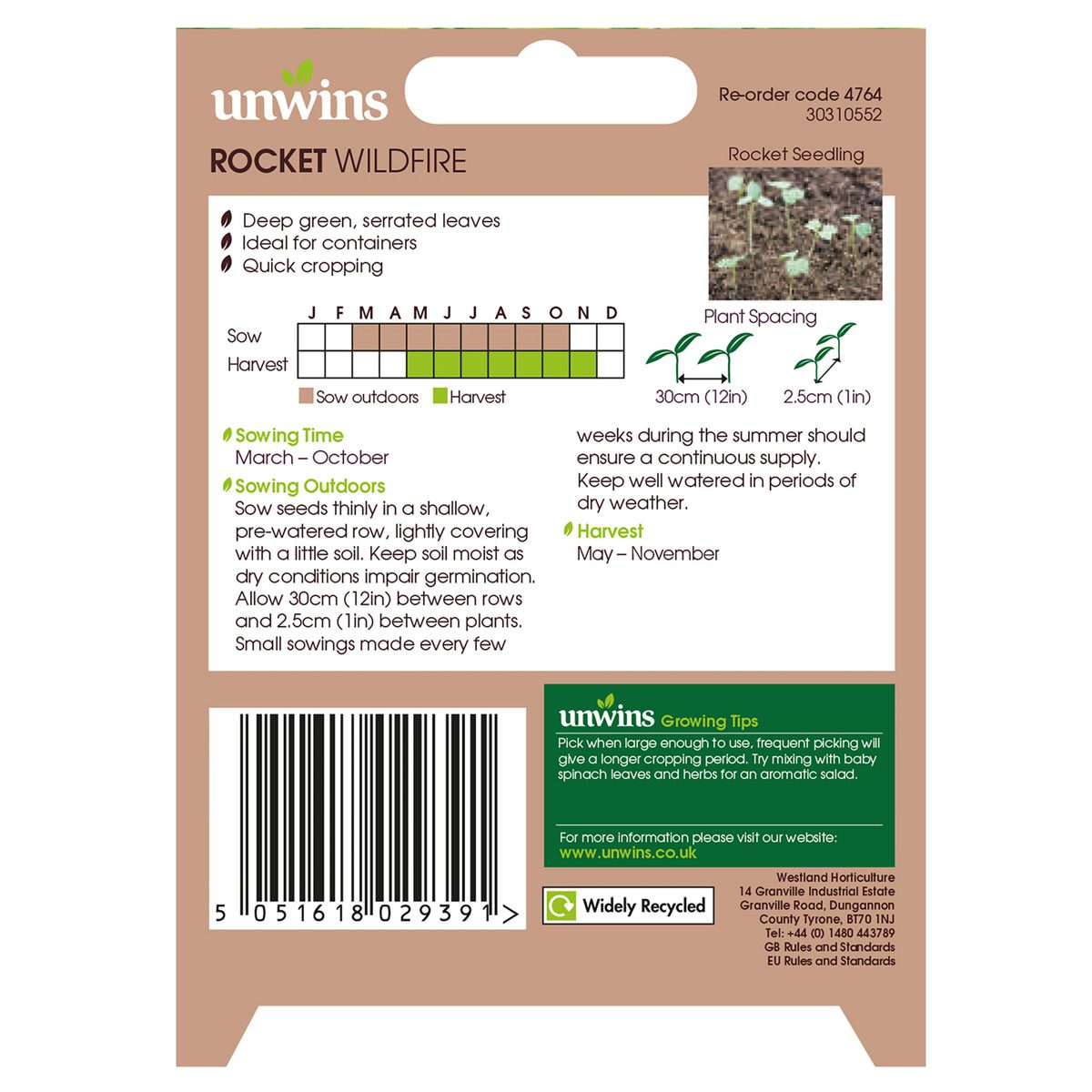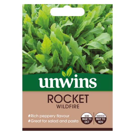 Unwins Rocket Wildfire Seeds produce a vibrant, peppery green leaf that’s packed with nutrients and perfect for summer picking. This versatile variety can be harvested repeatedly from May to October, adding a fresh, spicy bite to salads, sandwiches, and garnishes. Easy to grow outdoors from March to September, it’s an ideal choice for home gardeners looking for flavourful, continual harvests throughout the warmer months.