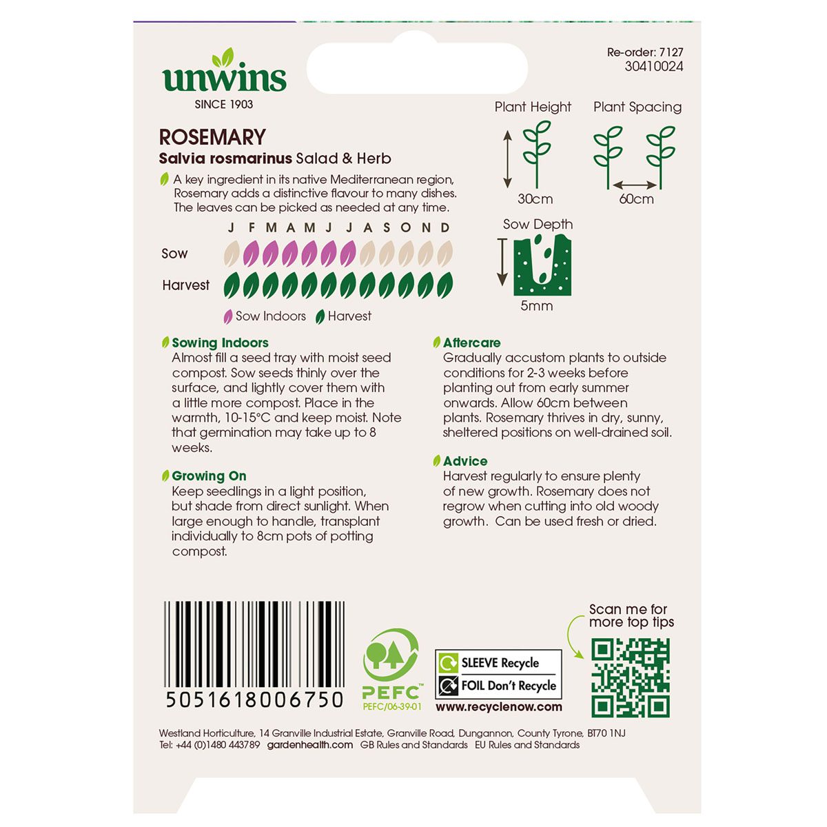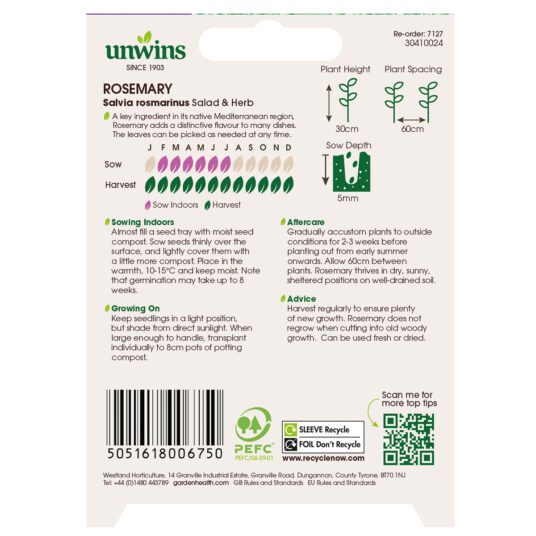 When to sow and harvest Unwins Rosemary Seeds