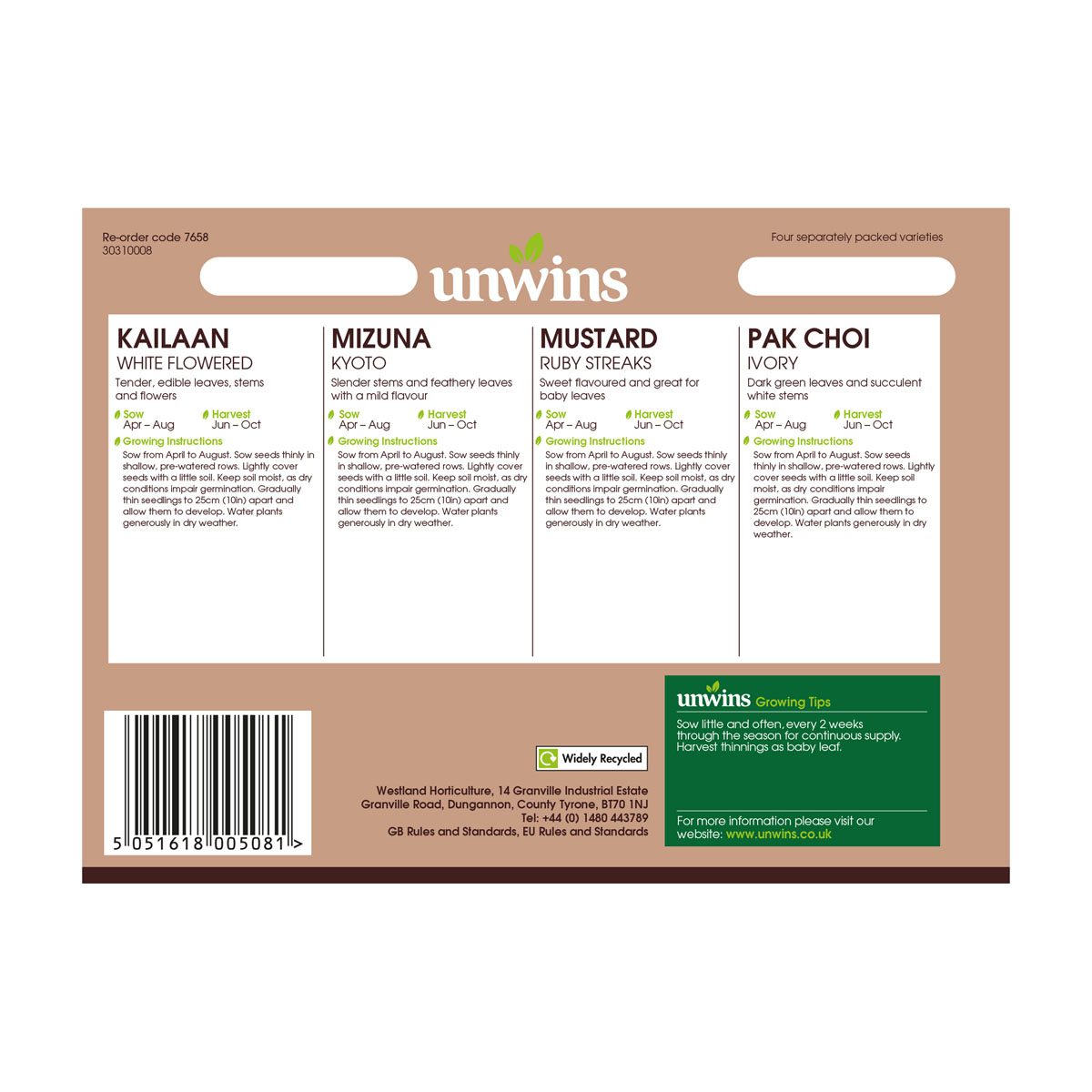 When to sow and harvest Unwins Salad Spicy Collection Seeds